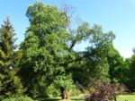 Freistehend, aufrecht wachsend, schiefer Stamm.