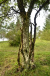Einstämmig mit einigen zum Teil abgestorbenen Bodenaustrieben, schirmförmige Krone, diverse Trockenäste. Grobe Borkenstruktur mit Flechtenbewuchs.