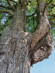 Überaus mächtiger Baum mit sehr dichter, vielastiger, hochgewölbter Krone. Neben der dominanten Zentralachse verlassen drei bogenförmig auswachsende Kronenäste den gewaltigen Stamm. Der stärkste von ihnen misst vor seiner Biegung erstaunliche 2,54 m im Umfang. Die Borke ist durchgehend tief längsrissig, mit sehr dicken Borkenstreifen. Nur ein kleiner Abschnitt ist längs gefeldert.